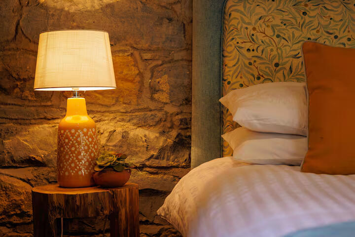 Queenies Lodge is a beautifully restored 1800s stone barn set on a working farm with a private woodland walk, wellness room with infrared sauna, and hand-crafted design details throughout. A peaceful escape steeped in heritage.